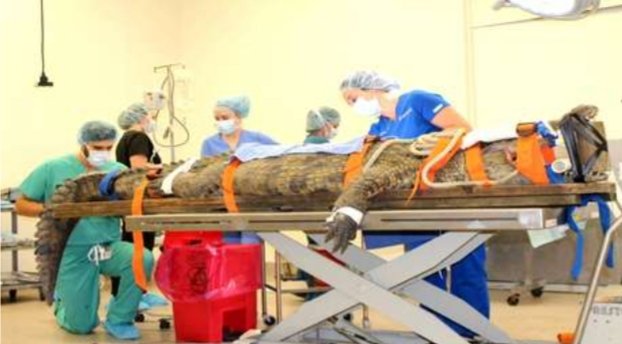خضع تمساح لجراحة في معدته و انتزاع حذاء كان في معدته