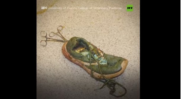 قام أطباء بيطريون جراحون من جامعة فلوريدا بإجراء عملية جراحية لتمساح يزن ١٥٤ كلغ و انتزعوا من معدته حذاءً ابتلعه بعد أن وقع من قدم أحد السياح الذي كان في حديقة اليغاتور في سان اوغسطين.