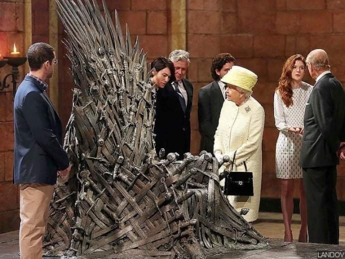 هل تعلم أن الملكة إليزابيث الثانية زارت موقع التصوير لسلسلة “لعبة العروش” في عام ٢٠١٥ و رفضت حينذاك الجلوس على العرش الحديدي، لأن و بحسب البروتوكول الملكي البريطاني أن الملك يمنع عليه الجلوس على عرش غريب .