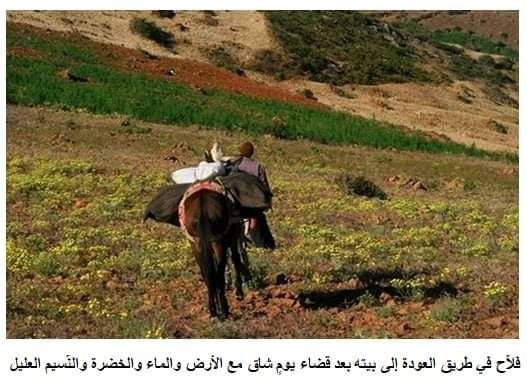 كانت أراضي (مُوح) في منطقة ( إبيّاضن) قريبة جدّاً من أراضي أفراد آخرين من عائلته،كانت الفدادين الخضراء تغصّ بمختلف أصناف المنتوجات الفلاحية والزراعية من حبوب، وخضروات، وفواكه موسمية على إختلافها من بطيخ أحمر(الدلاح) وشمّام ،وعنب، وكومثرى (إجاص) وتفاح ،ورمّان،ولوز، فضلاً عن انتشار أشجار التين والزيتون بكثرة في كلّ مكان،بالإضافة إلى البُر،ّ والشعير، والذرة ،والفلفل الأخضر، والباذنجان، والسبانخ، والسّلق، والنعناع ، والبازلاء، والفول، ،والخسّ(عشبة الحكماء) والقرنبيط، والكرنب (الملفوف) ، والقثاء، والفاصوليا الخضراء، والفلفل، ،والبطاطس، والبصل ،والبطاطا الحلوة، والثوم ، والبرسيم (فارفرا) والنفل، والفصّ لإطعام ماشيتهم وسواها من خيرات الله الواسعة ، وأمّا أشجارالتين الشوكي ذات الثمرات اللذيذة الشهيّة، وشجيرات الصبّار(أكفير) التي كانوا يستخرجون منها خيوطاً متينة فغالباً ما كانت تغرس في مناطق جبلية وعرة، أو بالقرب من مقارّ سكناهم ، كانت البهائم من بغال، وحمير، وفى بعض الحالات الخيول تستعمل لنقل المنتوجات الفلاحية والزراعية الى منازل سكناهم أو إلى الأسواق الأسبوعية لبيعها لاقتناء مستلزمات أخرى ضرورية للعيش من زيت، وسكر،وشاي، وصابون ، وغاز،وأواني منزلية وسواها من المتطلبات.