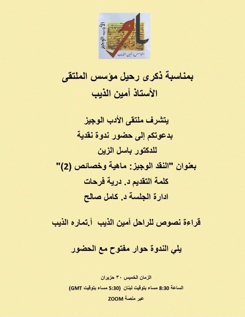 بدعوتكم إلى حضور ندوة نقدية