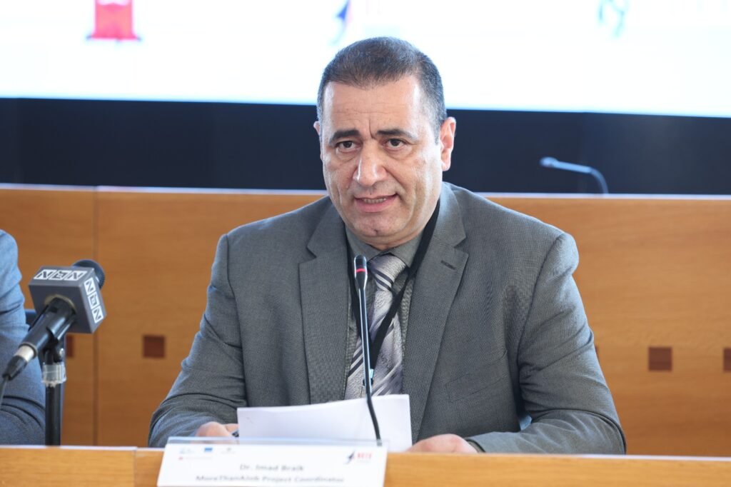 بعد الشريط المصور ألقى د.عماد إبريك ممثل جامعة النجاح مدير مشروع ”MoreThanAJob” كلمة شكر فيها برنامج الاتحاد الأوروبي ” برنامج التعاون عبر الحدود لدول الحوض المتوسط , والذي يمثل أكبر مبادرة للتعاون عبر الحدود ينفذها الإتحاد الأوروبي, بموجب أداة الجوار الأوروبية. وتحدث عن أهداف المشروع وتميّزه في خلق فرص عمل لفئة العاطلين عن العمل ،والغير متعلمين واللاجئين والتي تشكل حوالي 20-30 % من مجموع السكان.وأكد أن أكثر من ثلث الشباب يعانون من البطالة، ونصف الشباب الخريجين من حملة الدبلوم والشهادات الجامعية هم عاطلون عن العمل. أو معطلون من استثمار طاقاتهم في التنمية والبناء، وأكثر من ربع الشباب يعانون من الفقر والحرمان. من هنا فالمشروع يجعلهم شركاء في عملية التغيير والتنمية المجتمعية، ويساعد في تعزيزصمودهم .. وتحدث عن العمل خلال السنوات الثلاثة الماضية مع اكثر من 700 شخص من مؤسسات العاملة في مجالات الاقتصاد التفاعلي و 150 شخص من المؤسسات الرسمية العاملة غي هذا المجال،عبر تدخلات متعددة، استهدفت بناء قدراتها وتمكينها من تقديم خدمات نوعية لأعضائها وللمجتمع المحلي. وأشار إلى تبني المشروع منهجية متكاملة خلال التنفيذ شملت تدريب الكوادر، وتطوير حاكمية المؤسسات والتخطيط الاستراتيجي، والتشبيك، إضافة إلى توفير المنح الفرعية لدعم مشاريع قامت بتطويرها المؤسسات المستهدفة تلبية لحاجات حقيقية لدى الفئات المستدفة . أيضا تنظيم ورش عمل واجتماعات شاركت فيها مئات المؤسسات، كما تمكن المشروع من بناء شبكة قوية تضم تلك المؤسسات ومن تعزيز التعاون والعمل المشترك فيما بينها.