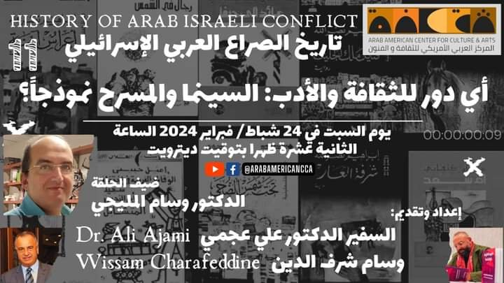 دعوة حضور الحلقة الحادية عشر من برنامج ” تاريخ الصراع العربي الإسرائيلي ” على منصة المركز العربي الاميركي للثقافة و الفنون
