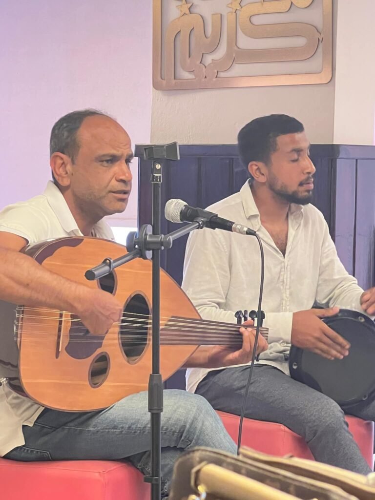 تخلل الأمسية عزف وغناء ملتزم للفنان خالد حسين برفقة ضابط الإيقاع وليد حسين.