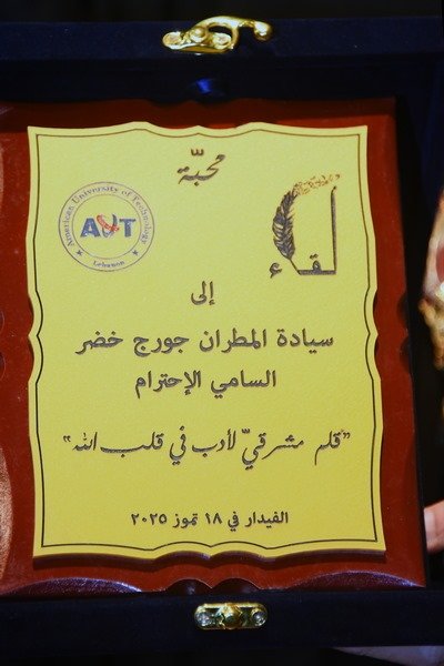 ثمّ كانت كلمة جامعة AUT، ألقتها الدكتورة ليليان قزّي، جاء فيها: “اجتمعنا اليوم من جميع الأطياف لتكريم الآتي من الأفق الكنسي الأرثوذكسي، الذي استطاع من خلال مسيرته أن يجمع الجواهر مما يصلح أن يكون كتابا” للإنسانية ومدرسة للأجيال وعلما” من أعلام الفكر والتربية والإيمان والوطنية فلا مشروع سياسي للمطران جورج خضر إلا ان يكون مفتاحه الذهبي الدعوة إلى توبة وطنية صادقة. امتشق سلاح الكلمة لمواجهة التعصب والكراهية والتفرقة وسخر كل مواهبه للتحرر من زنازين الطائفية ليقدم خطابا” دينيا” وانسانيا” عنوانه الحبّ”.
