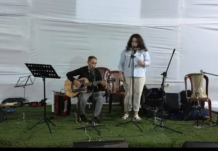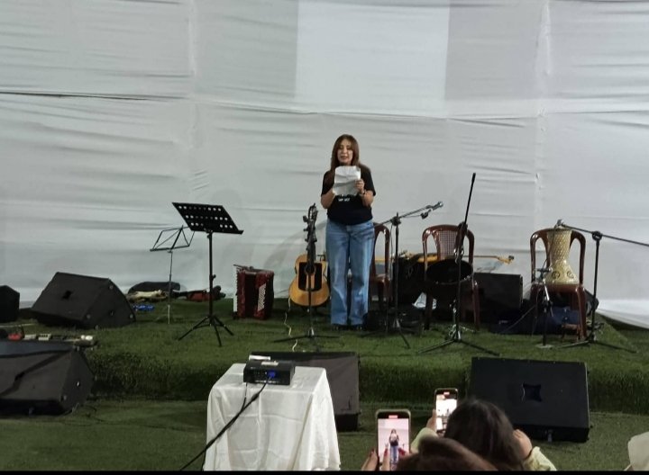 بعدها بدأت الأمسية بأغنية “معلومات مش أكيدة” غنتها الناشطة في اللقاء ريان أبو حيدر يرافقها الناشط عصام العطار على الغيتار.