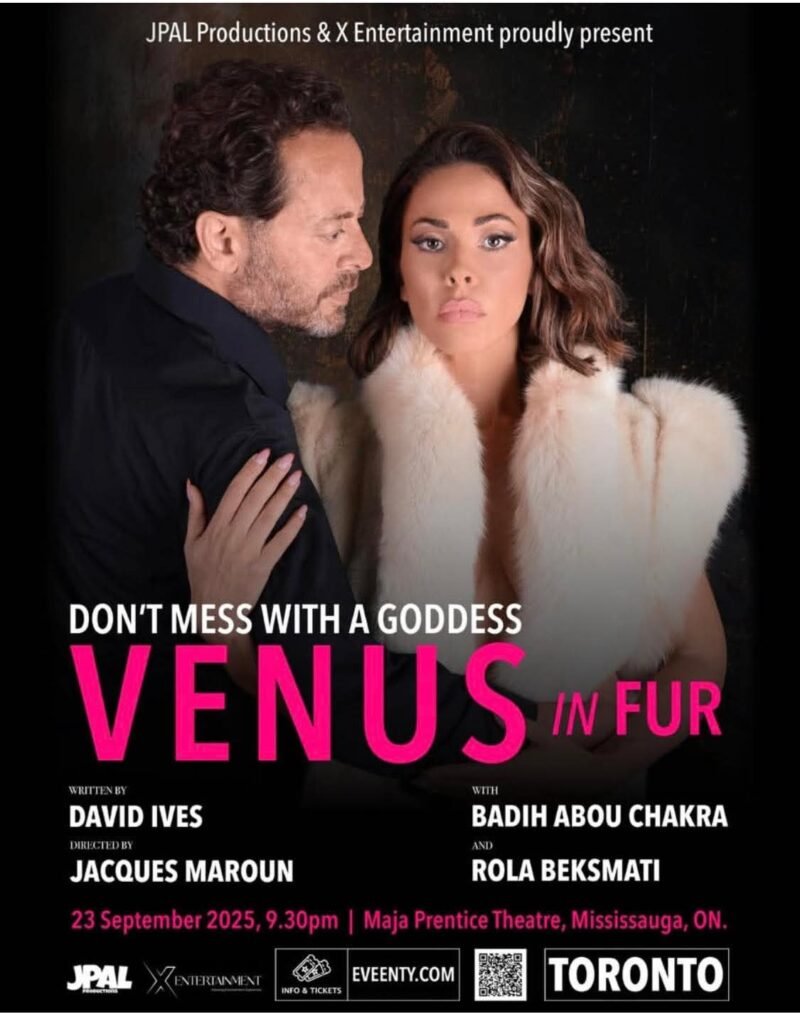 لمسرحية “Venus” اللبنانية المقتبسة عن “Venus in Fur” للكاتب الأميركي ديفيد آيفر، والمأخوذة أساسًا من رواية ألمانية شهيرة اسمها «فينوس في الفراء» (Venus im Pelz) كتبها ليوبولد فون زاخر-مازوخ (Leopold von Sacher-Masoch) سنة 1870.