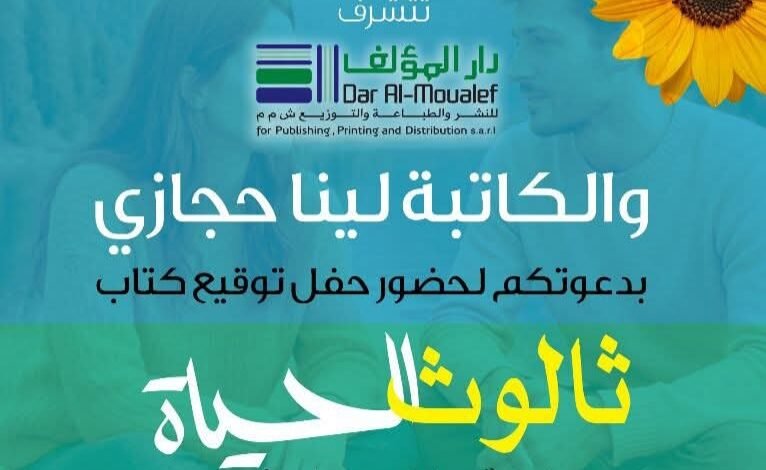 لينا حجازي توقع كتاب: ” ثالوث الحياة: الحبّ، الحقيقة، الحريّة ” في 23 ت٢ في سنترو مول/ س ٤