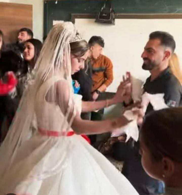 رتبت آفين ثياب زفافها البيضاء في كيس من النايلون، ولم يتوفر لدلشاد الوقت لشراء طقم رسمي يليق بيوم الزفاف.