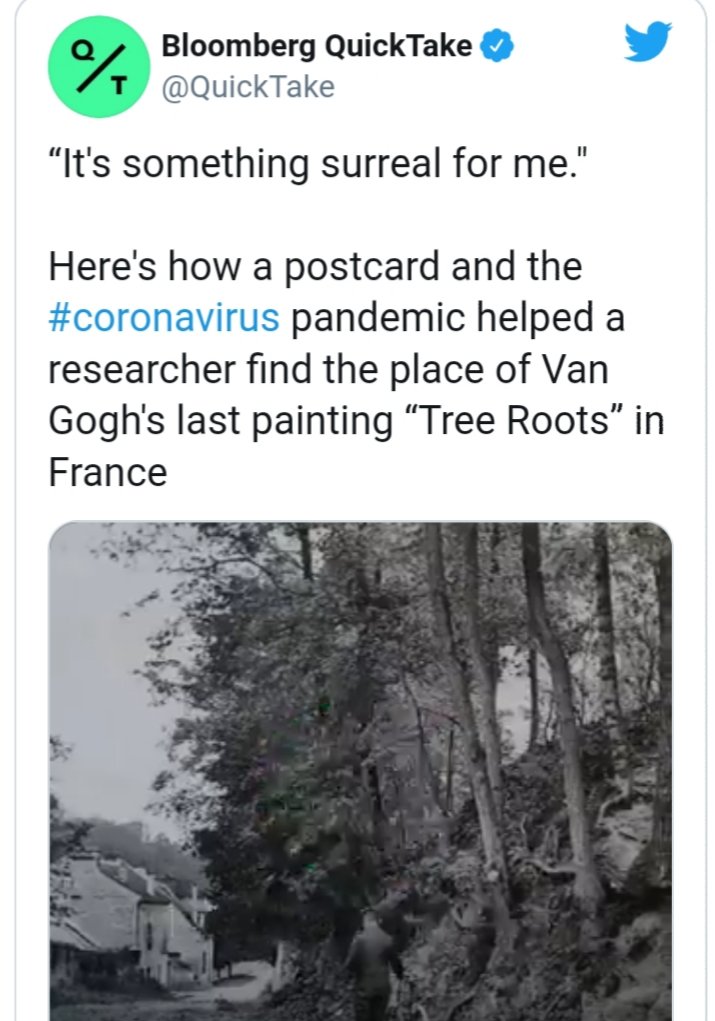 توفي(vincent Van Gogh) في ٢٩يوليو من العام ١٨٩٠ولكن بعد مئة وثلاثين عام من وفاته هناك سبب إضافي للإحتفال بأعماله الشهيرة. بطاقة بريديّة قديمة حدّدت مكان رسمه للوحته الشهيرة جذور الأرض (Tree Roots)