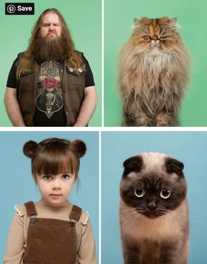 طبعا سوف نعرض لكم صورا من محيط عائلي و هي لقطات دراسة تمت بعد مجهود كبير ، كي يتم جمع القواسم المشتركة في الملامح بين القطط و أصحابها ، في الحقيقة هو عمل رائع و كبير للفنان المصور جيرار غيسينغز (gerard gethings) .